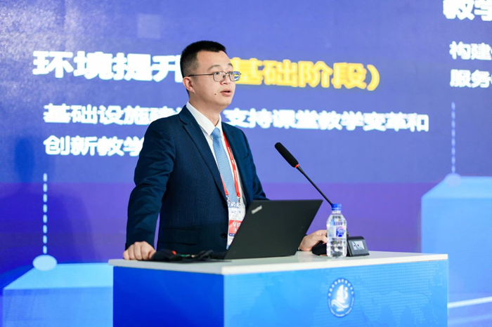 希沃副總裁黃逸濤以數字技術在教育領域的四個發展階段為脈絡,深入分享了希沃在教學體系環境升級、教育技術深化應用、教師數智能力提升及教育生態重塑四大方向的長期實踐與創新成果。