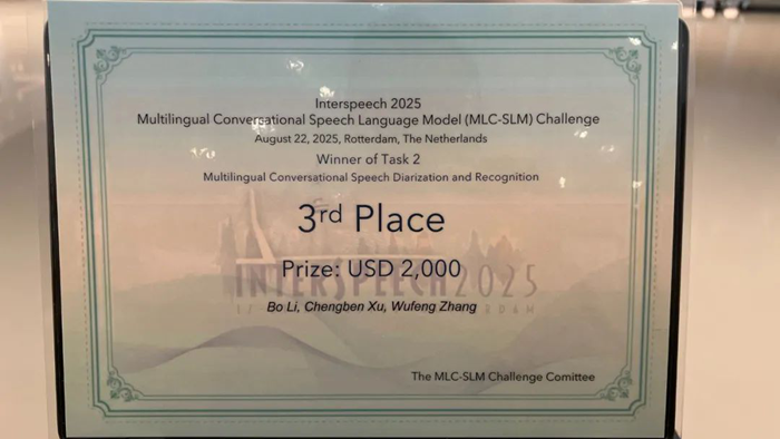 希沃團隊榮獲MLC-SLM挑戰賽賽道二第三名