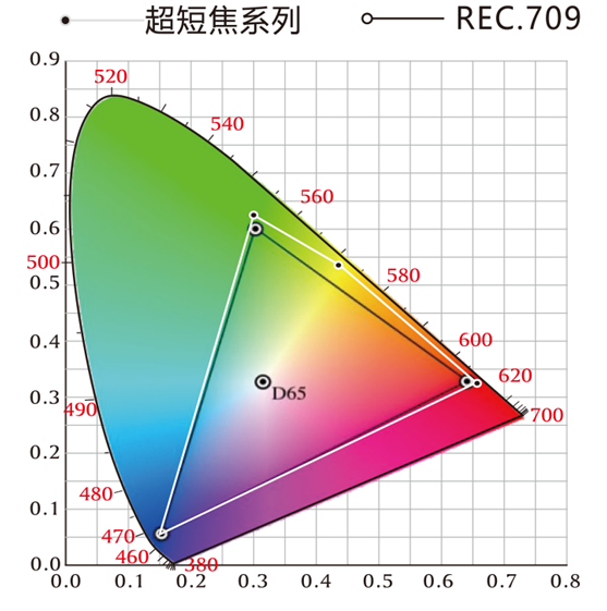 色彩顯示區域高于REC.709色域標準,理論值可滿足自然界中90%以上的人眼可識別色彩。