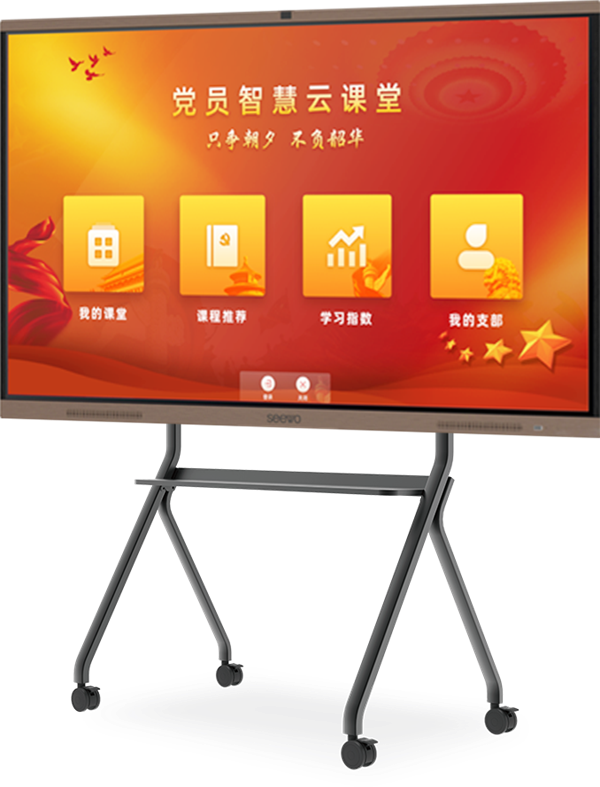 首先,希沃智慧黨建方案從產品基礎形態出發,打造高度匹配的場景化外觀。無論是咖啡金邊框配色的黨建一體機,還是溢滿書香氣息的藝術木紋畫框云屏,皆高度融合黨建場景氛圍。