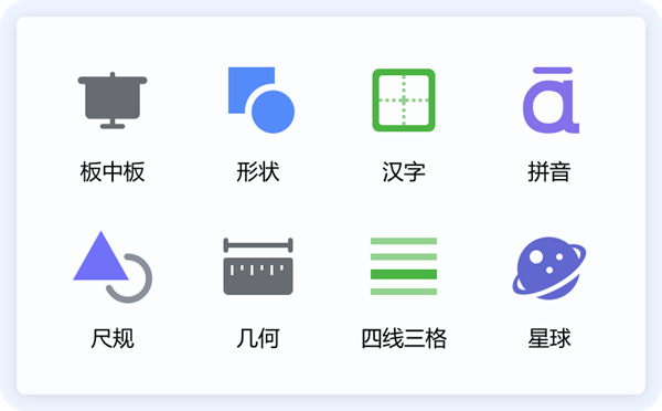 為此,希沃遠程互動助手特意更新豐富多樣的學科工具,方便各個學科的教學應用,助力老師提升信息化教學能力,打造更優質的專遞課堂,讓課堂教學更高效生動。其中包括了板中板同步、形狀同步、漢字、拼音、幾何、尺規、四線三格、星球同步等學科工具,很好地滿足不同學科的教學需求。老師上課可隨時調用這些學科工具,將抽象知識、復雜概念簡單形象化,吸引學生的課堂注意力,加強學生對知識的理解和記憶,讓專遞課堂更加高效、更有魅力。