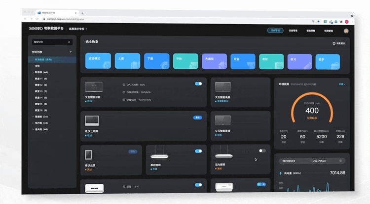 希沃物聯校園平臺就像一個指揮棒,聯動起希沃所有品類的設備*。不論教學終端、數字支持,還是教室能源等設備,都能做到統一管理,真正幫助老師減負增效。