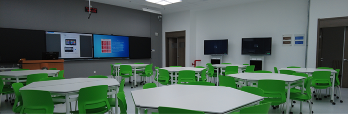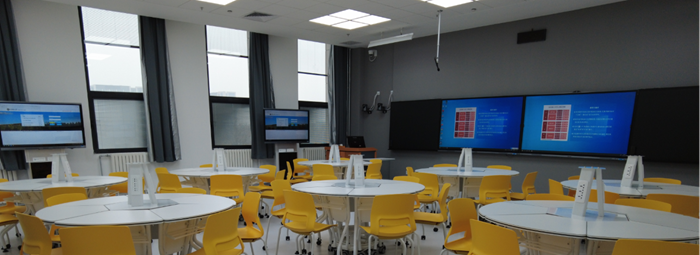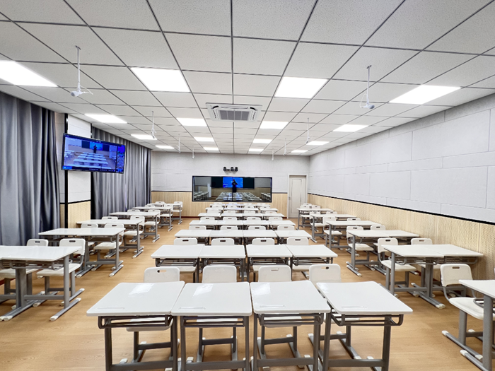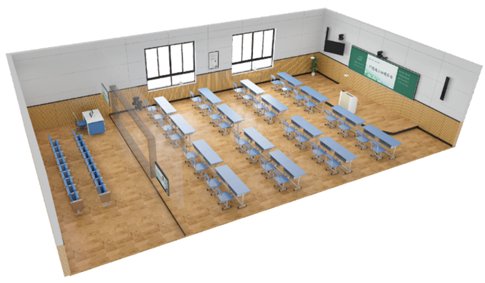 建設前期入學校進行位置勘測,根據不同教室形態及教室面積定制化輸出專業的改造方案,綜合考慮教室內軟硬件設備擺放,顏色搭配等,以適應不同規模的教學活動。