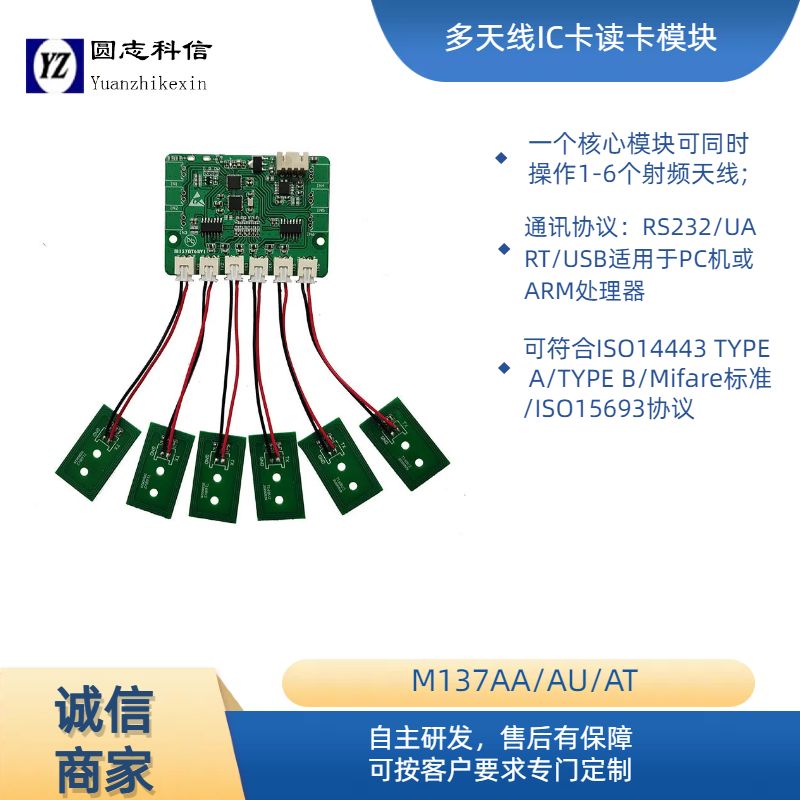 產(chǎn)品詳細(xì)介紹M137 多天線讀卡模塊 >>產(chǎn)品描述 采用NXP高度集成讀寫卡芯片射頻基站 符合ISO14443 TYPE A/Mifare標(biāo)準(zhǔn) 支持Mifare One S50,S70, FM11RF08及其兼容卡片 最多可同時(shí)支持5個(gè)天線,在某些特定場(chǎng)合下可大大降低用戶成本 用戶不必關(guān)心射頻基站的復(fù)雜控制方法,只需通過簡(jiǎn)單的命令集可以實(shí)現(xiàn)對(duì)卡的完全操作 核心模塊超小尺寸,尺寸50X28mm 通訊協(xié)議:RS232/UART/USB適用于PC機(jī)或ARM處理器 與PC機(jī)連接時(shí)可以通過發(fā)送底層指令進(jìn)行相應(yīng)操作,也可以通過上位機(jī)軟件調(diào)用圓志DLL動(dòng)態(tài)庫(kù)進(jìn)行相應(yīng)操作 配備完善的開發(fā)例程,更適合客戶在短時(shí)間內(nèi)完成相應(yīng)開開發(fā)任務(wù) 自帶看門狗 基于模塊的擴(kuò)展功能很強(qiáng)可根據(jù)用戶要求修改軟件定制個(gè)性化模塊,不用改變線路 廣泛應(yīng)用于非接觸智能水、電、氣三表、交通一卡通讀寫器,充電樁,桌面發(fā)卡器,門禁考勤讀寫卡器,汽車電子感應(yīng)鎖配套,辦公商場(chǎng)/洗浴中心儲(chǔ)物箱的安全控制,各種防偽系統(tǒng)及生產(chǎn)過程控制