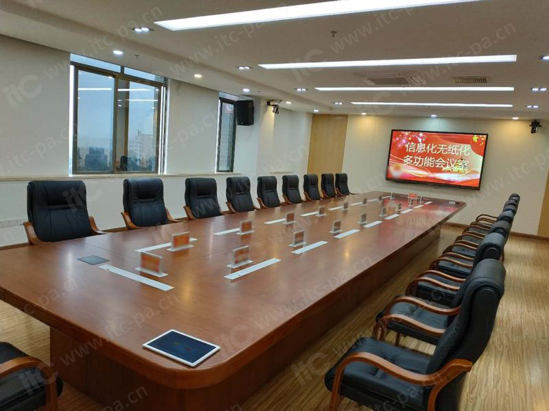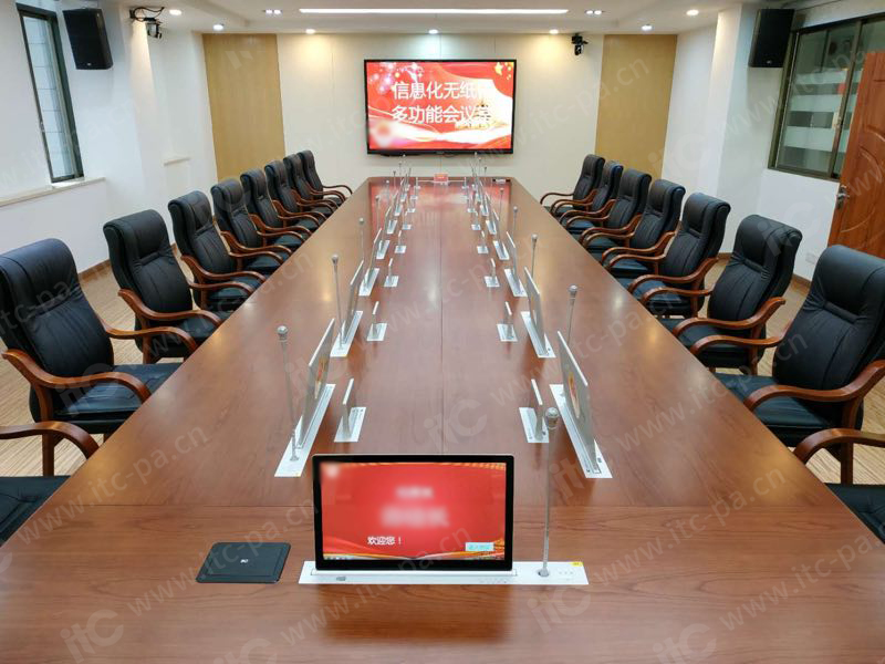 itc嚴格按照檢查院的會議設計要求,結合會議室的建筑結構及相關設計標準進行設計,選用了一體式雙屏的無紙化會議終端。