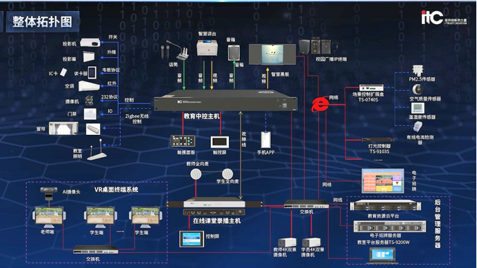 值得一提的是,現(xiàn)階段itc虛擬仿真系統(tǒng)、顯示系統(tǒng)、中控管理系統(tǒng)、教室錄播系統(tǒng)、照明系統(tǒng)等關(guān)鍵模塊均已實現(xiàn)互聯(lián)互通,為教育教學(xué)提供更高效、便捷的技術(shù)支持。這一創(chuàng)新舉措不僅豐富教師的教學(xué)手段,還為學(xué)生創(chuàng)造沉浸式、互動式的學(xué)習(xí)環(huán)境。