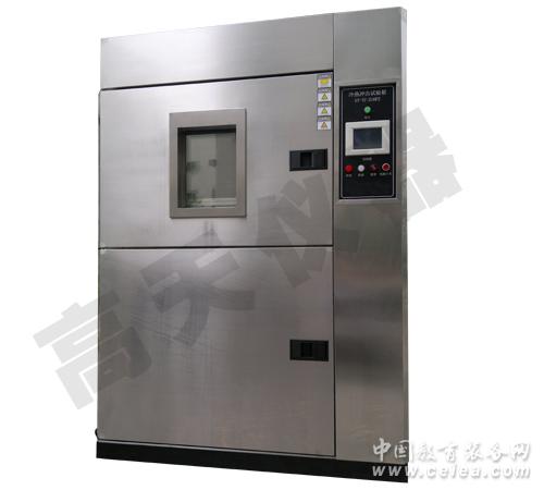 產品詳細介紹購買冷熱沖擊試驗箱,請認準“高天”品牌,高天(GAOTIAN)產品質量可靠,供貨及時,得到廣大客戶的一至好評!服務的客戶有富士康科技、格力電器、海南馬自達、深圳緝私局、福建質監所、南昌鐵路局、大連化物所、浙江大學、廣東工業大學、廣州王老吉、李錦記食品、歐普照明、柯達、蘇泊爾電器、美的等眾多知名企業,深受到廣大客戶的好評。參考網站:http://www.whgt17.com 冷熱沖擊試驗箱適用于電子、汽車配件、塑膠等行業,測試各種材料對高、低溫的反復沖擊能力。檢測產品于熱脹冷縮所產生的化學變化或物理傷害,確保產品的品質。 型號:GT-TC-64 滿足標準:產品滿足CNSMIL、IEC、JIS、等標準 【技術參數】: 冷熱沖擊試驗箱溫度范圍:高溫箱: +60℃~200℃; 低溫箱: 0℃~-70℃; 溫度波動度:±0.5℃; 溫度均勻:±2℃; 升溫速率:≤5℃/min; (全程平均) 降溫速率:≤5℃/min;; (全程平均) 預冷下限溫度:≤-70℃ 冷熱沖擊試驗箱沖擊溫度:+150~-60℃; 工作室尺寸: 400×400×400mm; (深×寬×高) 樣品架尺寸:150×150mm; 溫度恢復時間: 5min; 樣品架轉換時間:≤10s; 沖擊方式:上下移動提籃式或翻板式 電源:380V±10﹪ 50Hz 為了保證試驗箱降溫速率和最低溫度的要求,本冷熱沖擊試驗箱采用一套進口法國 “泰康”全封閉壓縮機所組成的二元復疊式風冷制冷系統。復疊制冷系統包含一個高溫制冷循環和一個低溫制冷循環; 原裝進口液晶顯示觸控式瑩幕直接按鍵型控制器,中文表示7.5”的圖形之廣視角,高對比附可調背光功能之大型LCD液晶顯示控制器。 特殊要求可訂做。