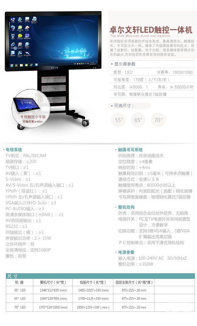 卓爾文軒LED觸控一體機(jī)