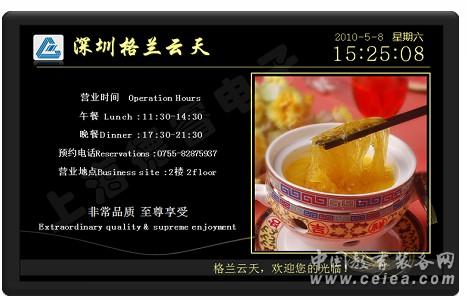 在每個(gè)宴會(huì)廳門(mén)口安裝1臺(tái)22英寸LCD,采用大理石開(kāi)孔嵌入墻體方式安裝,發(fā)布每日宴會(huì)廳的會(huì)議資訊。