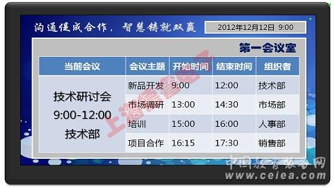 4.實時發布:與信息發布系統集成,在會議室預約之后就能自動實時的發布到會議室門口的顯示屏上;