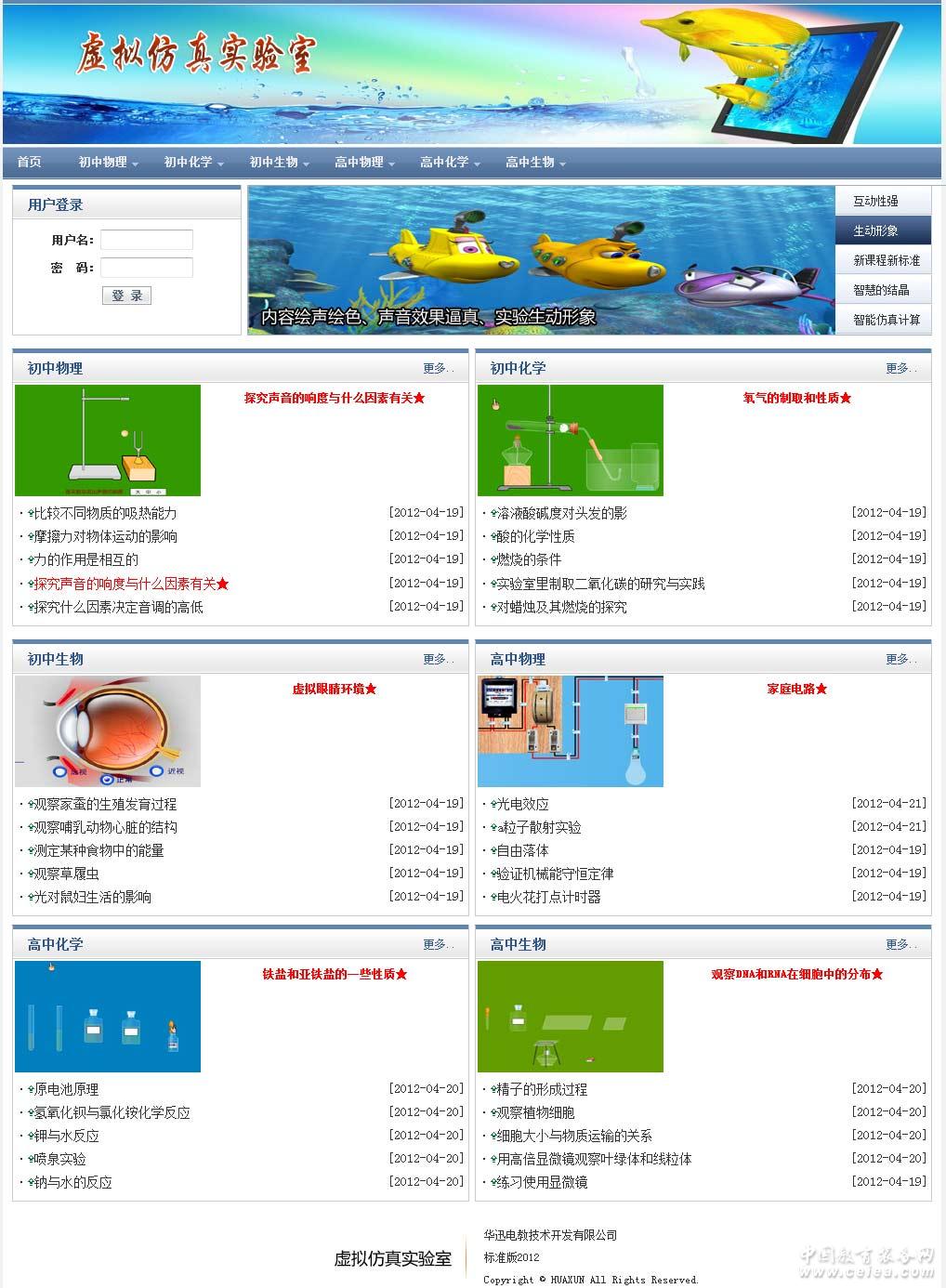 華鈞中學(xué)仿真實驗平臺共有物理、化學(xué)、生物三科,囊括新課標(biāo)初、高中物理、化學(xué)、生物教材幾乎所有學(xué)生實驗內(nèi)容,中學(xué)仿真實驗系統(tǒng)每一個實驗都按照模擬的科研活動來設(shè)計,同時又讓學(xué)生掌握實驗的基本技能、操作規(guī)范、自我測評。其中,實驗?zāi)M是主要內(nèi)容,是一個用虛擬現(xiàn)實技術(shù)開發(fā)的模擬實驗室。學(xué)生通過鼠標(biāo)可以輕松操作整個實驗過程,例如實驗儀器的組裝、操作,實驗化學(xué)物品的取出和放置,實驗過程控制等;同時,實驗現(xiàn)象逼真且有趣味性,不但讓學(xué)生做實驗如若身臨其境,而且還集娛樂與探索科學(xué)知識溶合于一體。這套軟件本著操作通用易學(xué)、生動形象的設(shè)計理念,為用戶展示了一個界面友好、數(shù)據(jù)準(zhǔn)確、內(nèi)容豐富的實驗操作平臺。中學(xué)仿真實驗系統(tǒng)讓學(xué)生通過實驗活動驗證所學(xué)的理論知識,掌握實驗技能,提高動手操作能力,培養(yǎng)觀察能力、分析能力、想象設(shè)計能力、創(chuàng)新能力和科學(xué)探究的能力。