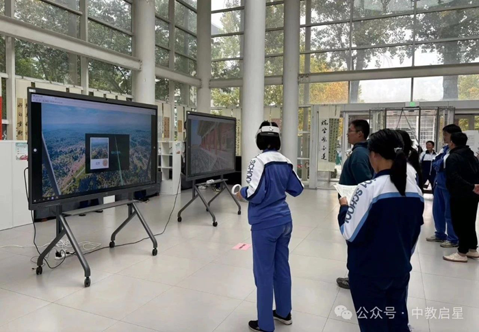 10月30日,北京一零一中學的特色校園活動天地文化節舉辦,今年活動的主題是“仰以觀于天文,俯以察于地理”,學校地理組的老師們規劃設計了各種各樣的地理特色體驗活動和實踐任務,為初中和高中的同學們提供了一場獨具地理特色的校園活動。中教啟星為此次活動提供了沉浸式的VR研學系統和全沉浸VR地理實驗實踐課程,讓同學們或者穿越時空,飛到西南喀斯特地貌的典型區域開啟一場研學科考之旅;或者變身為科學家走到實驗室或野外,開展地球科學實驗、自然地理實驗、災害地理實驗及人文地理考察。