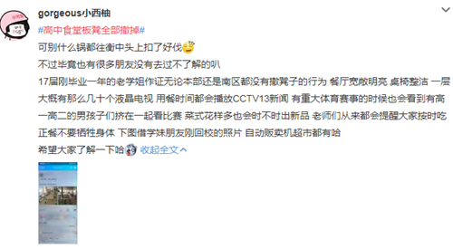 消息曝出來之后,衡水中學的校友們紛紛表示“這鍋我們不背”,衡中學校食堂有凳子、有電視、有空調,飯還很好吃。
