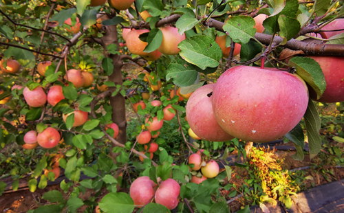 下午,登山賞過紅葉后的大家開始稍顯疲憊,不過隨車到達蘋果采摘園后,每個人臉上又開始充滿激動。有員工是南方人,表示:“這是第一次摘蘋果,感覺很新奇,而且新鮮摘的蘋果真的很好吃。”