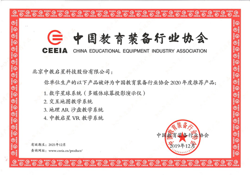 過去一年,中教啟星的VR教學(xué)系統(tǒng)榮獲中國教育裝備行業(yè)協(xié)會(huì)76屆中國教育裝備展產(chǎn)品金獎(jiǎng)榮譽(yù),并自動(dòng)成為2020年度推薦產(chǎn)品審核;入選中國教育裝備行業(yè)協(xié)會(huì)第三批團(tuán)體標(biāo)準(zhǔn),成為地理團(tuán)體標(biāo)準(zhǔn)制定的牽頭單位;數(shù)字星球、AR沙盤、交互教學(xué)系統(tǒng)獲中國教育裝備行業(yè)協(xié)會(huì)2020年度推薦產(chǎn)品等。