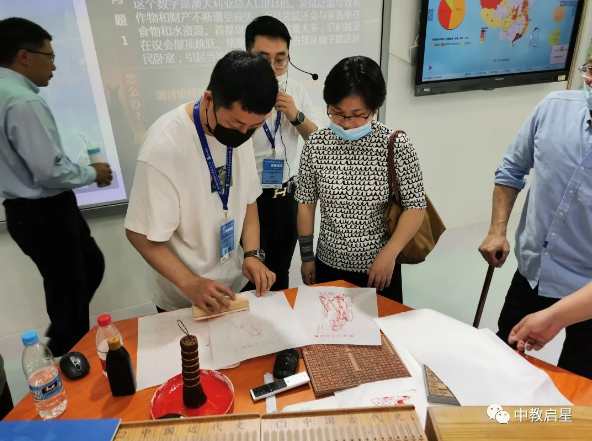 當(dāng)然,明星產(chǎn)品數(shù)字星球系統(tǒng)、地理AR沙盤、VR教學(xué)系統(tǒng)還是參展觀眾的“心頭愛”。傳統(tǒng)文化體驗(yàn)套裝更吸引了不少老師的目光,一張張地拓印著我們的雕版印刷體驗(yàn)套裝,樂(lè)此不疲。
