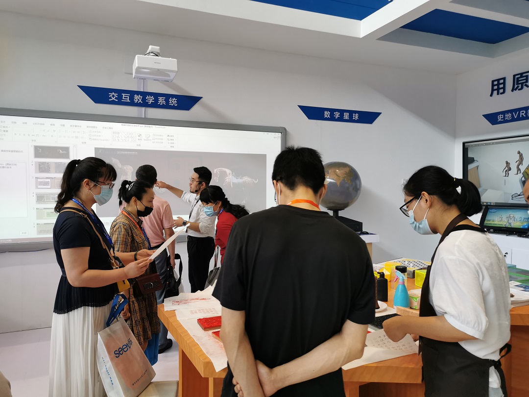 中教啟星攜最新的基于虛擬現(xiàn)實(shí)技術(shù)的地理、歷史教室整體解決方案、啟星VR移動(dòng)課堂、新勞動(dòng)教育解決方案,以及核心產(chǎn)品數(shù)字星球系統(tǒng)、交互教學(xué)系統(tǒng)、新版地理歷史VR教學(xué)系統(tǒng)、AR沙盤、全息投影等亮相長(zhǎng)安,吸引了諸多參展嘉賓駐足體驗(yàn),并受到大家的一致好評(píng)。