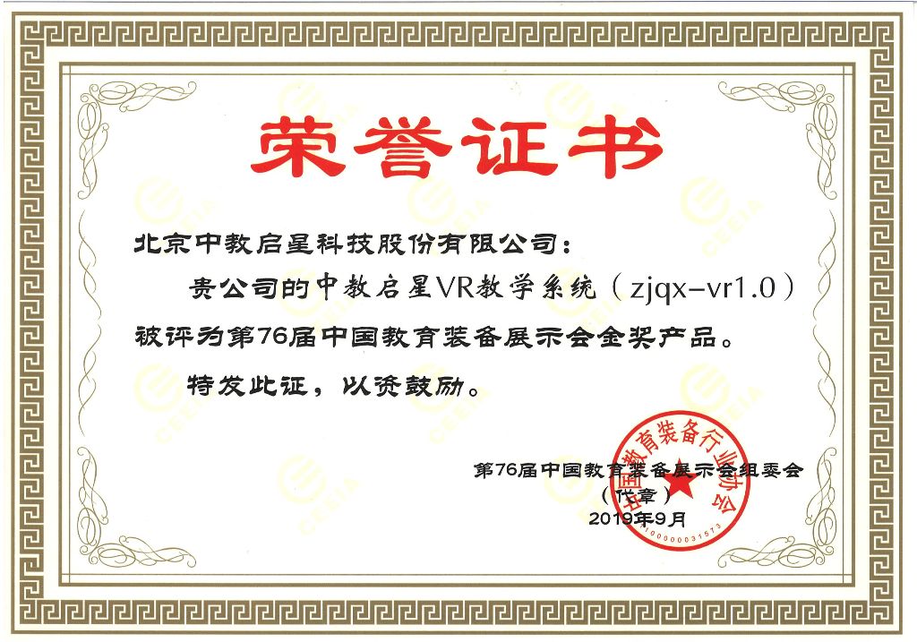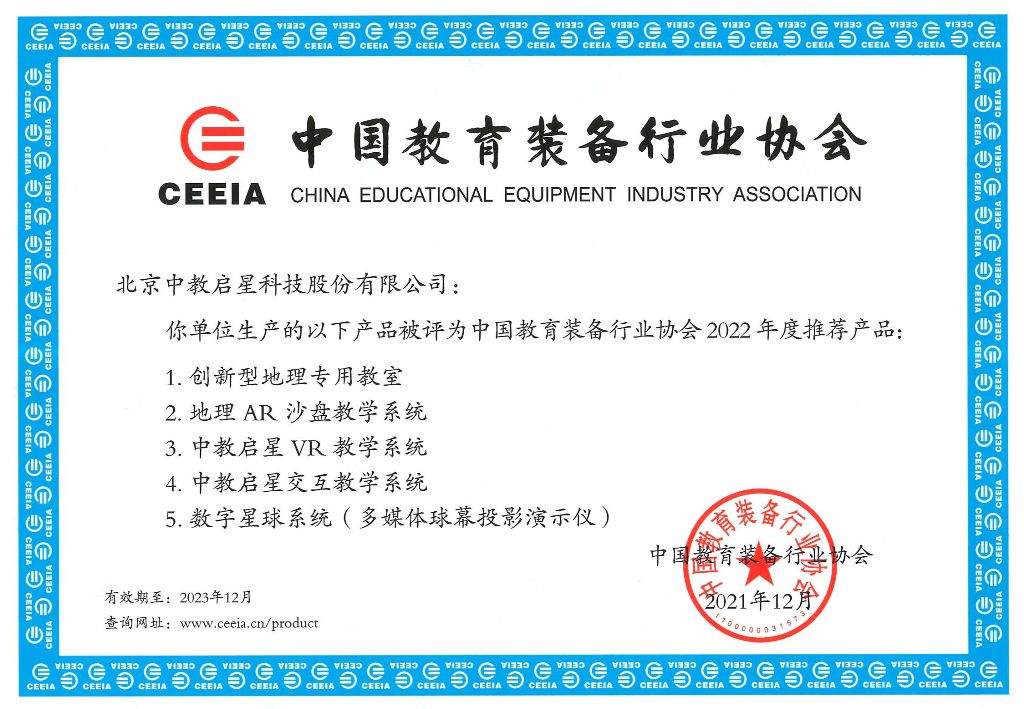 作為中國教育裝備領(lǐng)軍企業(yè)之一的中教啟星,這幾年,積極推進VR產(chǎn)品在行業(yè)內(nèi)的應用,連續(xù)打造推出寰宇地理VR教學系統(tǒng)、文明的足跡VR教學系統(tǒng)等覆蓋初高中地理、歷史所有知識點的VR資源產(chǎn)品,已連續(xù)多次榮獲中國教育裝備行業(yè)協(xié)會產(chǎn)品金獎和推薦產(chǎn)品稱號,有效推動了更多VR產(chǎn)品在教育行業(yè)內(nèi)扎根、發(fā)展和應用。