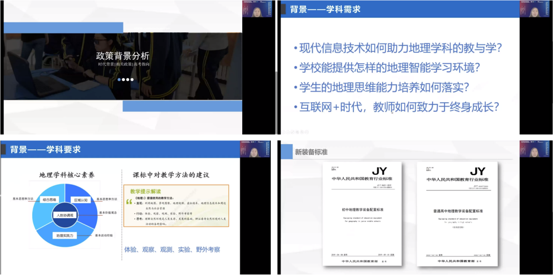 王院長結合地理信息技術在課堂中的實際應用案例,分析地理教育裝備、信息技術在學生思維能力培養過程中發揮的作用,一方面有利于促進學生積極主動學習地理,激發學習興趣,培養學生區域認知、綜合思維、地理實踐力、人地協調觀的地理核心素養,另一方面,有利于教師及師范生教學技能、課程設計的提升。
