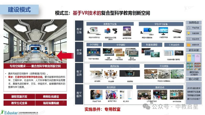 依托中教啟星十幾年教育資源開發的能力與技術成果,參照學科教室功能室的項目建設經驗,中教啟星VR+科學教育解決方案面向三大應用場景,打造三大模式全方位助力學校開齊開足開好國家課程標準規定科學實驗課程。