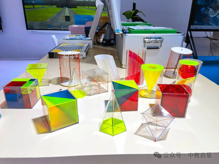 立體幾何模型、模塊化幾何模型搭建套裝、三維重力博弈棋盤等動手操作的數學學具,也吸引了眾多參觀客戶的關注。