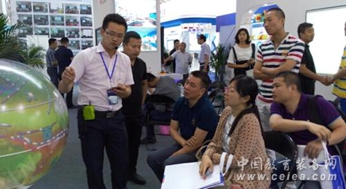 展覽現(xiàn)場(chǎng),在人群中聚集的中教啟星展臺(tái),當(dāng)看到眼前的數(shù)字星球系統(tǒng),將地理上的氣壓、氣流、山脈、海洋等給立體的呈現(xiàn)出來時(shí),這景象讓參觀者嘆為觀止。“我們那時(shí)候?qū)W地理很痛苦,感覺很抽象,如果能像現(xiàn)在這樣有個(gè)數(shù)字星球系統(tǒng),立體的將知識(shí)點(diǎn)展現(xiàn)出來,我地理應(yīng)該不會(huì)那么差吧。”一參展者接受采訪時(shí)說。