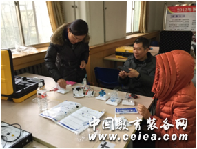下午,老師們根據(jù)自己的興趣愛好,對上午所學課程進行選擇性練習。趣味數(shù)學項目中的博弈棋盤吸引了眾多老師的眼球,通過李主任的悉心講解,老師們了解了比賽規(guī)則與方法,領悟了博弈棋盤的精髓。而科學探究項目中的傳感器使用與數(shù)據(jù)分析也讓老師們大開眼界,通過仔細的思考與實踐,巧妙地將生活中常見的溫度、濕度數(shù)據(jù)進行了采集與分析。老師們紛紛表示,通過以后的實踐與鉆研,一定能開發(fā)出更加吸引學生的活動課程。太陽能、風能、氫能等探究活動讓老師們對新能源有了全新的認識,極大激發(fā)了老師們學習本門課程的興趣,也增強了教學信心。