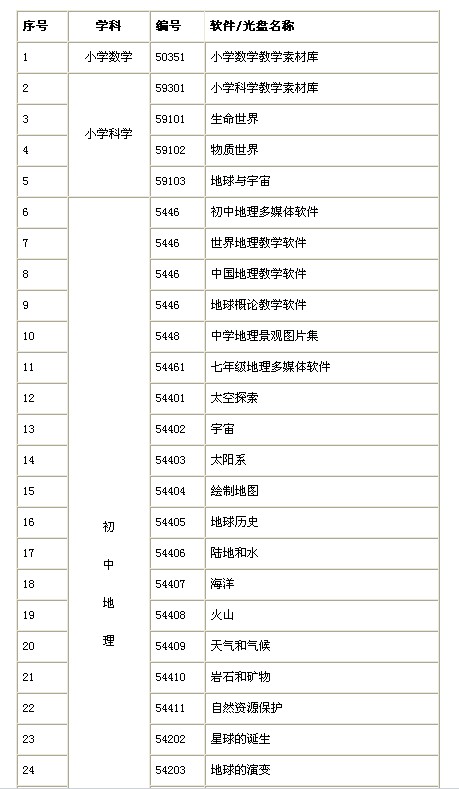 教育部教學(xué)儀器設(shè)備目錄 中涉及的所有軟件品種(CDROM)