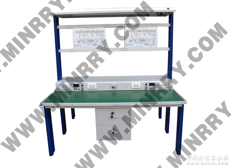 產(chǎn)品詳細介紹1、本裝置為雙面4工位設計,聯(lián)體組合安裝,每裝置機架為1.6x 1.4 x 1.8m,鋁型材框架結(jié)構(gòu),表面防靜電噴涂處理,桌面上加敷3mm綠色塑膠板,鋁合金封邊處理,美觀耐用。每工位獨立提供4路AC220V5A交流輸出,1路0~30V 3A分段連續(xù)可調(diào)直流電源,配備掛圖板、器具柜,帶漏電保護開關(guān)。