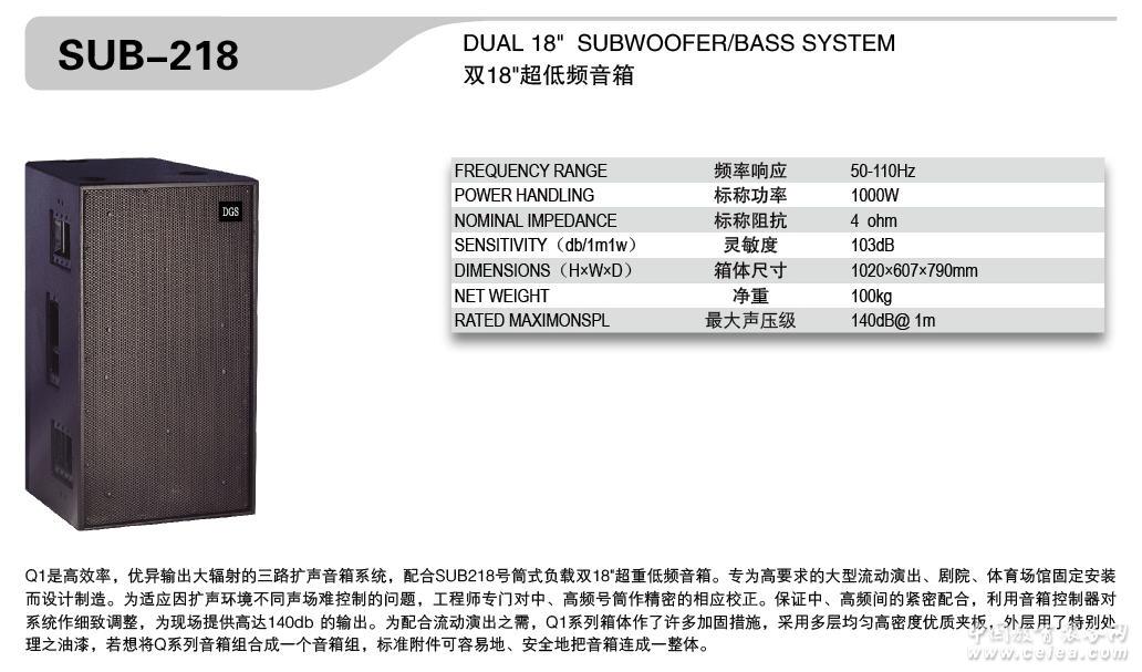 產(chǎn)品詳細(xì)介紹Q1是高效率,優(yōu)異輸出大輻射的三路擴(kuò)聲音箱系統(tǒng),配合SUB218號(hào)筒式負(fù)載雙18超重低頻音箱。專為高要求的大型流動(dòng)流出、劇院、體育場(chǎng)固定安裝而設(shè)計(jì)制造。為適應(yīng)因擴(kuò)聲環(huán)境不同聲場(chǎng)難控制的問(wèn)題,工程師專門(mén)對(duì)中、高頻號(hào)筒作精密的相應(yīng)校正。保證中、高頻間的緊密配合,利用音箱控制器對(duì)系統(tǒng)作細(xì)致調(diào)整,為現(xiàn)場(chǎng)提供高達(dá)140DB的輸出。為配合流動(dòng)流出之需,Q1系統(tǒng)箱體作了許多加固措施,采用多層均勻高密度優(yōu)質(zhì)夾板,外層用了特別處理之油漆,若想將Q系統(tǒng)音箱組合成一個(gè)音箱組,標(biāo)準(zhǔn)附件可容易地、安全地時(shí)箱連成一整體。 |