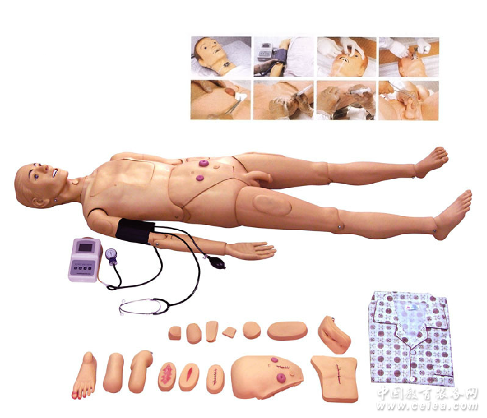 產品詳細介紹產品名稱:鄭州高級全功能護理人模型(帶血壓測量)護理訓練模擬人 該產品是在TR/HL125型的功能基礎上進行升級,出了TR/HL125型的全部功能外,還增加了血壓測量操作訓練、頸動脈模擬搏動生命體征功能。更增加護理培訓時的真實感。 功能介紹: 該產品是在TR/HL125型的基礎上升級,集國外同等產品之長處,由我公司開發研制的高級型護理學基礎所涵蓋的全部護理操作功能的模擬人模型。模型具有整體護理與拆裝分布件進行技能訓練教學。 本模型是由進口塑膠材料、經不銹鋼模具澆注工藝而成。具有形象逼真、操作真實、拆裝方便、結構標準、經久耐用等特點。是目前國內較先進、功能齊全、材料考究的全新產品。 主要功能: • 清洗梳理頭發、洗臉 • 眼耳清洗滴藥 • 口腔護理、假牙護理 • 口鼻氣管插管 • 氣管切開護理 • 吸痰法 • 氧氣吸入法 • 胸腔、腹腔、肝臟、骨髓、腰椎穿刺 • 灌腸法 • 女性導尿術 • 男性導尿術 • 女性膀胱沖洗 • 男性膀胱沖洗 • 口鼻飼食法 • 洗胃法 • 胸腔引流法 • 腹腔引流發 • 手臂靜脈穿刺、注射、輸液(血) • 三角肌皮下注射 • 骨外側肌注射 • 造瘺引流術 • 結腸造口術 • 臀部肌肉注射 • 整體護理:擦洗、穿換衣服、冷熱療法 • 四肢關節左右彎曲、旋轉、上下活動 • 創傷評估與護理:消毒清洗、換藥、止血、包扎