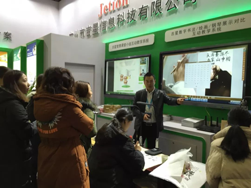 8日剛開展不久,吉星展區即爆滿,吉星智慧課堂產品吸引了全國各地的教育部門及學校領導等前來參觀、交流。