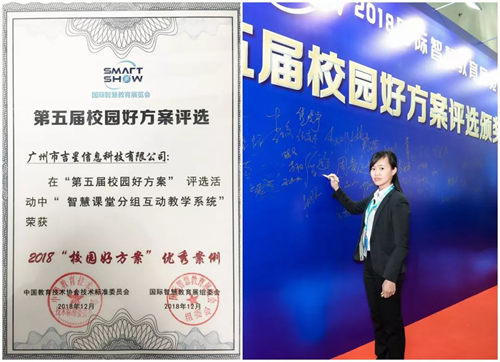 在2018國際智慧教育展上,吉星展示了基于數字化校園以學生為中心的智慧課堂分組互動教學系統方案收獲了客戶的一致好評,并榮獲