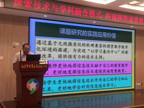 中國教育技術(shù)協(xié)會學(xué)術(shù)委員會副主任原北京市電教館館長及總課題組組長潘克明匯報中說道:通過基于無線微錄儀的軟硬兼容的課堂教學(xué)數(shù)字化環(huán)境的搭建,為實現(xiàn)“以學(xué)習(xí)者為中心”的課程改革,提供強有力的技術(shù)支持;幫助教師更快地將信息技術(shù)融于自己的教育教學(xué)過程,更好地發(fā)揮信息技術(shù)透視實施智慧教育;幫助學(xué)生更快地將信息技術(shù)作為自己的學(xué)習(xí)和認(rèn)知工具,更好地學(xué)會利用信息技術(shù)學(xué)習(xí)。