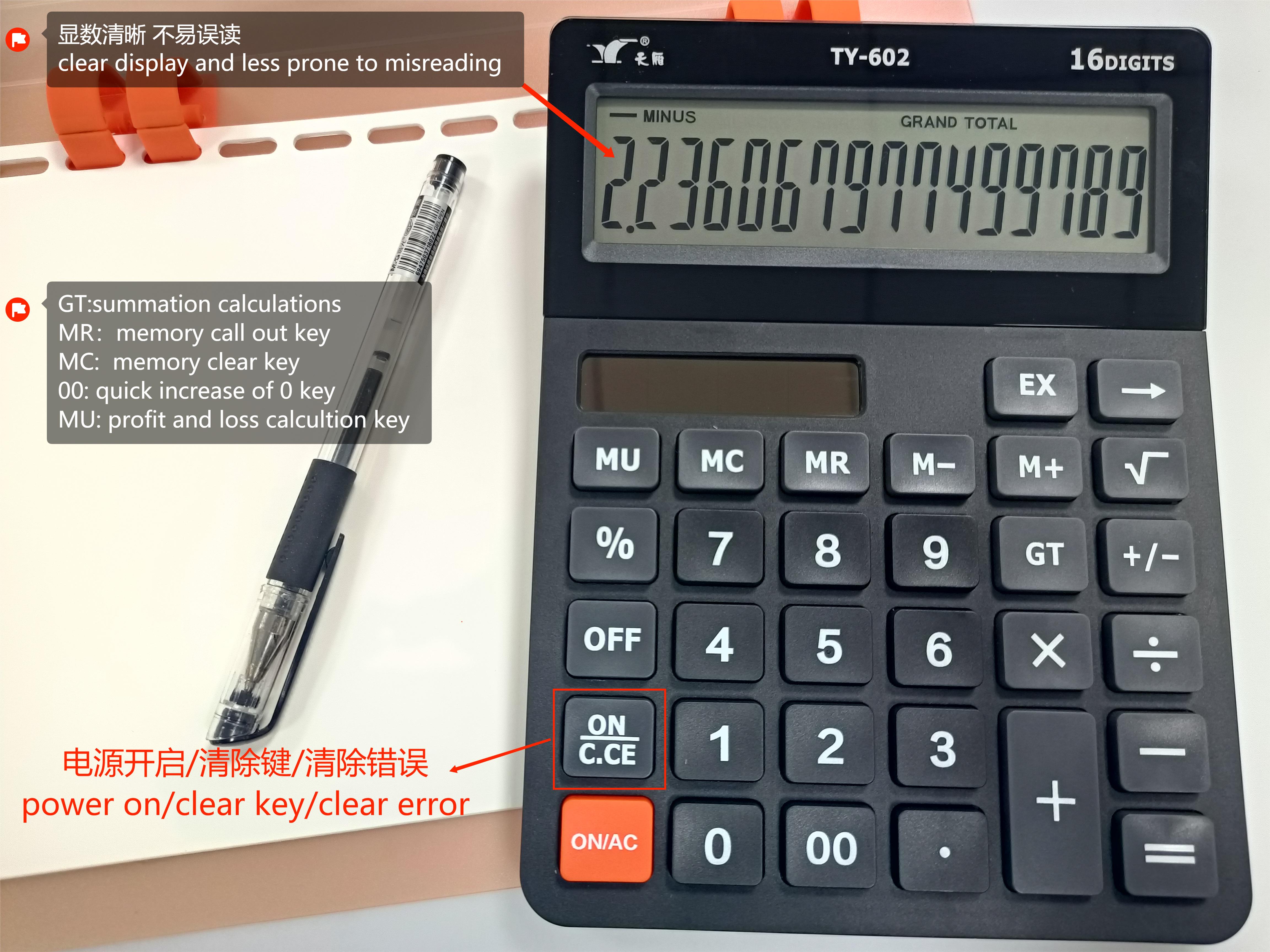 TY-602雙電源16位數臺式計算器