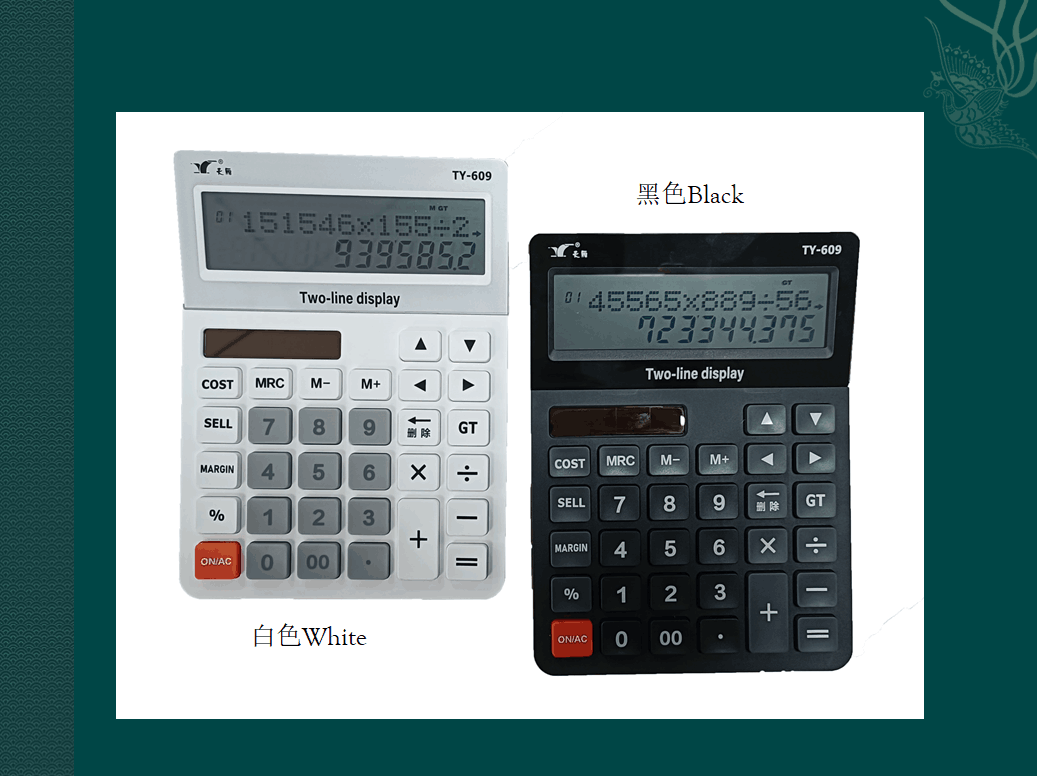 TY-609雙行雙電源臺式計算器