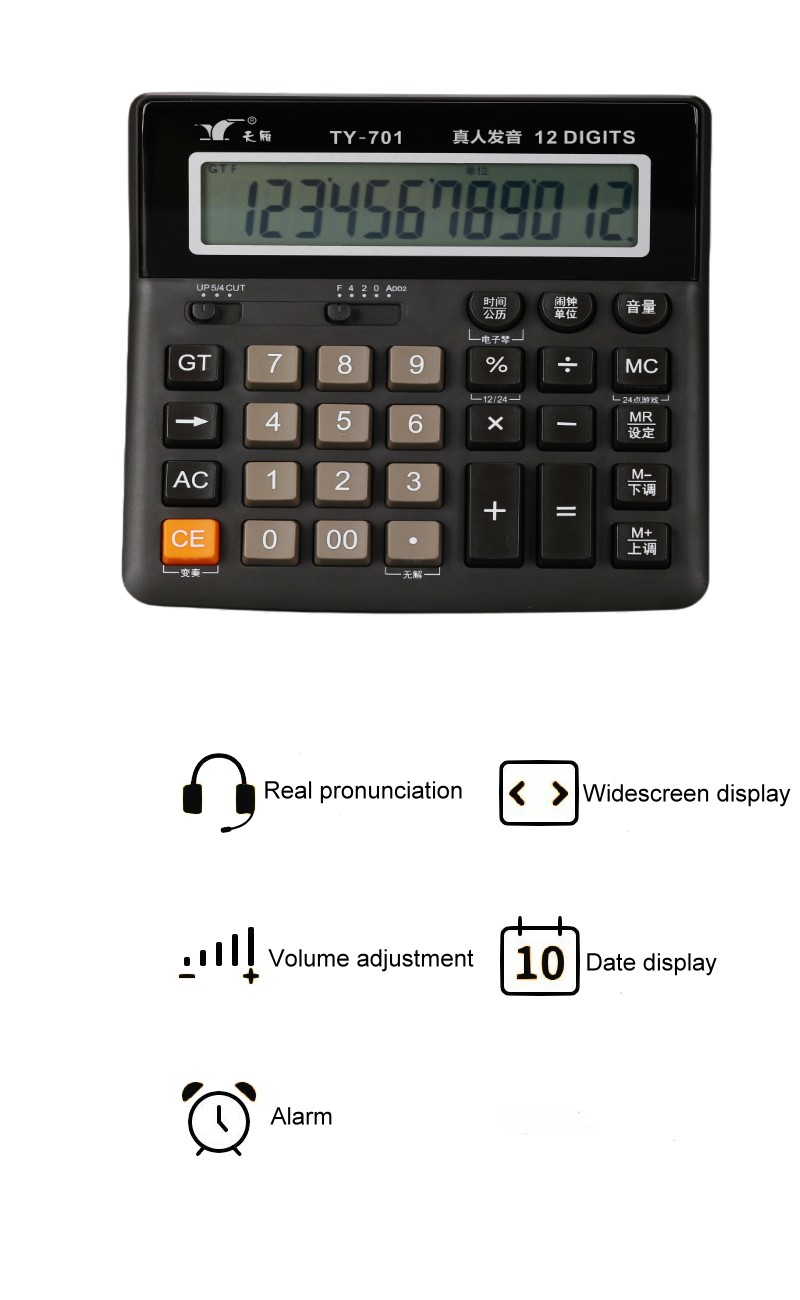 TY-701真人發(fā)音12位數(shù)臺式計算器