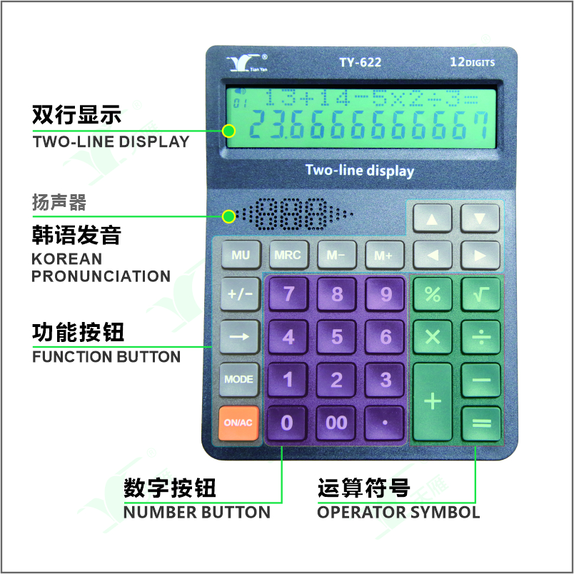 TY-622雙行韓語語音計算器車查數(shù)功能