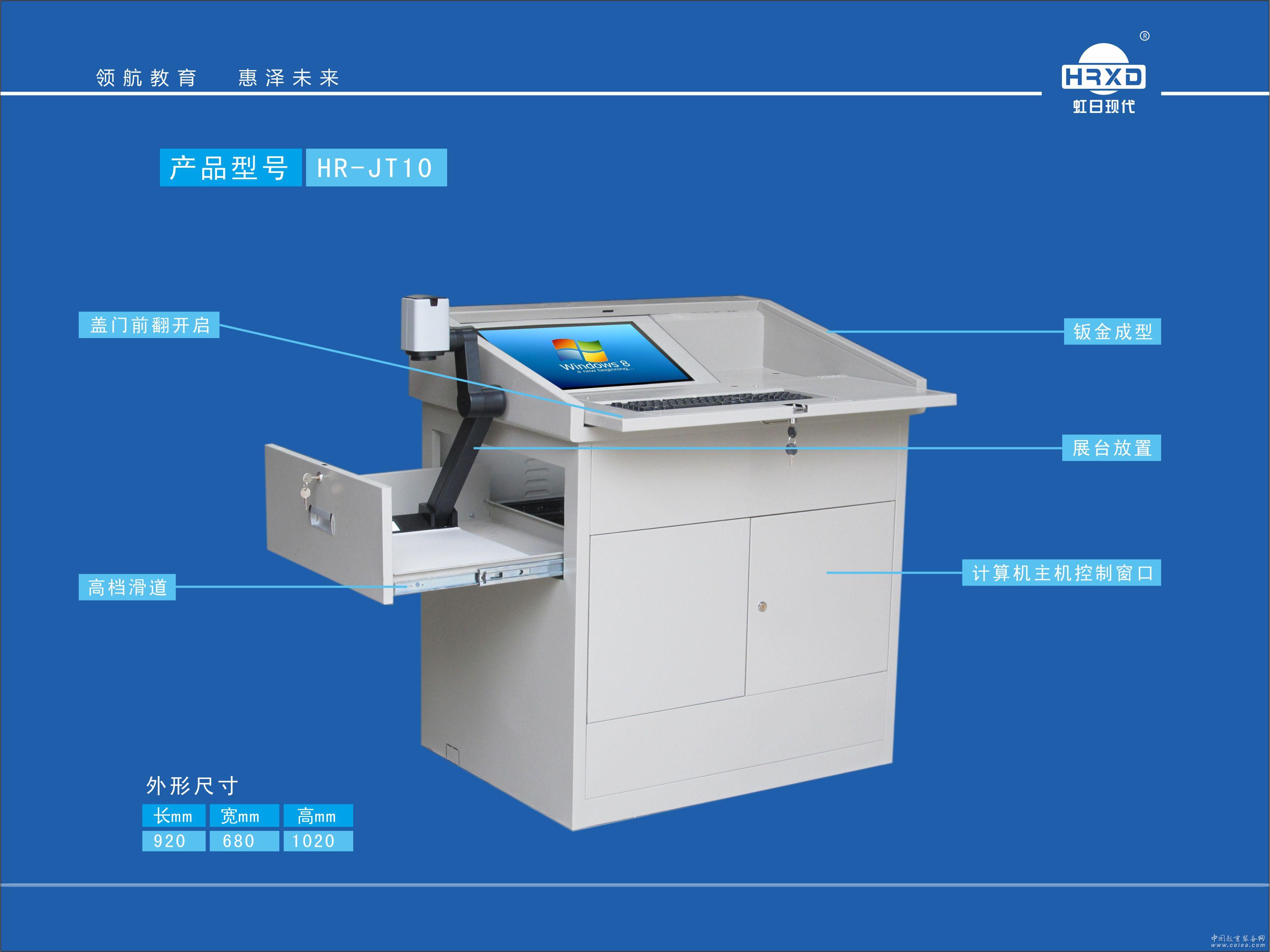 3、 可選項:講臺臺面集成有電腦啟動和重啟開關、外置電腦光驅、220V電源等。可選配電磁鎖、IC卡。