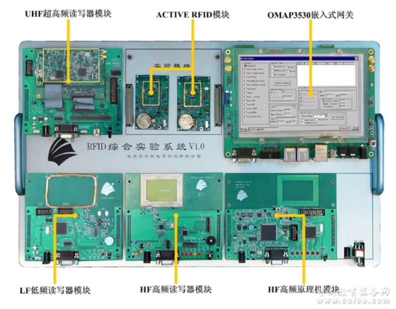 三、系統組成 RFID創新教學實驗系統采用模塊化設計,由UHF超高頻部分、HF高頻部分、LF低頻125K部分、HF高頻原理機部分、Active RFID、嵌入式網關及通用供電通信底板等7部分組成。各個模塊可以單獨使用形成獨立的功能單元,也可以全部插接到底板形成完整的系統,系統具備智能掃描功能,可自行掃描當前接入的所有模塊。 1、LF低頻部分 125KHz 低頻RFID讀寫器模塊,基于國際標準協議開發,采用美國ATMEL公司生產的高集成度RFID專用芯片U2270B設計而成。發射頻率為120KHz—150KHz,典型發射頻率為125KHz,采用曼徹斯特和雙相編碼。支持低功耗模式。支持6種睡眠模式:空閑模式、ADC噪聲抑制模式、省電模式、掉電模式、Standby模式、擴展的Standby模式。 2、HF高頻部分 13.56MHz高頻RFID讀寫器模塊,采用美國TI公司最新的低功耗RF射頻芯片TRF7970A,支持ISO15693、ISO18000-3、ISO14443A/B、FeliCaRFID協議、支持NFC標準NFCIP-1(ISO/IEC 18092)和NFCIP-2(ISO/IEC 21481)。內部集成編碼器、解碼器和NFC收發器,可工作于主動及被動模式,同時具備獨立查詢模式和快速標簽識別模式,用于讀寫器快速查詢標簽,支持三種速率:106Kbps、212Kbps、424Kbps 3、UHF超高頻部分 UHF超高頻部分采用全球知名超高頻IC廠家Impinj(英頻杰)公司的RF收發器R2000芯片,工作頻率為840-960MHz,芯片內部集成功率放大器,輸出功率可配置(最高可配置到17dBm),同時配置外部功率放大器(最高可配置到32.5dBm),可為高性能應用提供額外功放支持。在大功率和連接大增益天線的情況下,可以穩定可靠讀取30-50米距離范圍的標簽。雙通道,雙天線配置,2個經過特別優化的高性能50Ω MMCX天線端口,可配置成一個隔離天線或者兩個一體天線。 空中協議支持EPC global UHF Class 1 Gen 2/ISO 18000-6C、ISO 18000-6B。采用DSB、SSB與PR-ASK調制,支持IP-X Version1.07,支持密集讀寫器模式(DRM),可配置成其它協議。靈敏度為:-95dBm(DRM)-110dBm(LBT),采用載波消除技術,讀取速度快、范圍廣,相位噪聲低,符合全球監管標準。 4、HF高頻原理機 HF高頻原理機采用ARM+FPGA架構,結合外部分立器件,實現完整的RFID芯片設計。工作在13.56MHz頻段,支持ISO15693、ISO14443A/B協議,全面展現了RFID芯片底層的原理,包括信號編碼、信號調制、載波、信號放大、信號解調、功率控制、邏輯控制、協議實現等,同時模塊上具有多個測試點,可以通過示波器能夠觀測到RFID讀寫器整個工作流程關鍵點的信號,包括編碼信號、載波信號、調制信號、調制載波信號、功率放大信號、解調信號等。可以觀測ISO15693標準規范下的15個強制指令和可選指令的執行情況,電子標簽的響應情況。用戶可以通過此單元掌握RFID的原理以及實現方法。 5、Zigbee Active RFID Active RFID采用TI公司的RF芯片CC2530F256,可實現ActiveRFID的ID識別及傳感數據采集傳輸。 小型一體式模塊化設計,紐扣電池供電,可以通過上位機動態修改采集及休眠間隔,超低功耗模式,采用全球知名的微型天線廠家英國Antenova天線。通信模塊采用主流六層板及郵票孔設計,性能穩定可靠,抗干擾能力強。 模塊集成多個傳感器部件,包括溫度傳感器、濕度傳感器、光照度傳感器、三軸加速度傳感器。 6、嵌入式網關: 嵌入式網關采用TI公司的雙核達芬奇架構微控制器OMAP3530作為主控制器,該處理器在單一的芯片上集成了600-MHz ARM Cortex-A8 Core、430-MHz TMS320C64x+ DSP Core、POWERVR SG™ 2D/3D加速引擎以及豐富的多媒體外設。 嵌入式網關底板集成主流各種無線通信模塊,包括:華為GSM/GPRS無線廣域網通信模塊、英國Antenova GPS全球定位模塊、美國TI Zigbee低功耗數據傳輸模塊、臺灣Jorjin藍牙+WIFI+FM近距離通信及網絡接入模塊。 7、通用供電通信底板: 通用供電通信底板為整個RFID系統中的各個模塊提供供電,同時完成各個功能單元的通信連接,通信底板預留多個插接口,各個模塊可隨意插接,無需人為干預或編號,系統會自動識別當前所連接的各個模塊。 |
