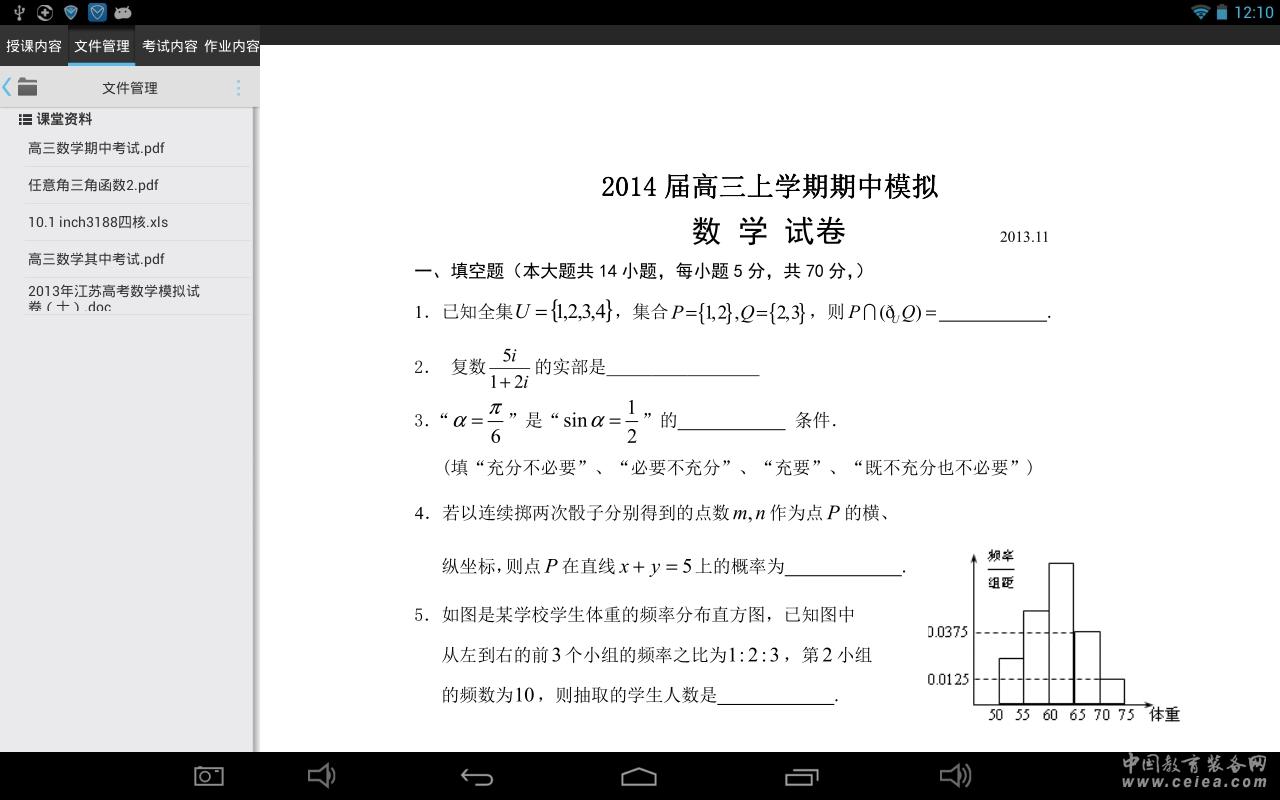 產品詳細介紹教師使用電腦在線打開瀏覽器http://jiahuangkeji.meibu.net:8060 (演示地址)密碼admin 密碼admin123即可進行備課、試卷命題、布置作業,學生通過平板電腦即可獲取這些內容進行學習,所有作業在平板電腦上完成。作業完成后教師即可在線批閱,成績自動統計。省事省力。節約資源。提高工作效率,此套系統全部免費,只需學生購買平板電腦即可,學校不需要額外購買任何設備。 |