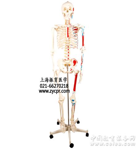 產品特點: 這款經濟型的、真人大小的、關節相連的人體骨骼模型是基礎解剖教學的理想模型,物美價廉。手臂和腿部可拆下供研究。顯示神經分支、脊椎動脈和腰椎間盤等。整體模型在人體全身骨骼模型的基礎上的半邊進行肌肉附著點著色。 材質:PVC,進口油漆。鐵制底座,不銹鋼支架。 尺寸:170CM 包裝:100x46x28CM, 1件/箱, 重量:14KG 人體骨骼附半邊肌肉著色模型170cm ZY-XC101A 1800元 人體骨骼附半邊肌肉著色模型85cm ZY-XC102C 510元 相關產品