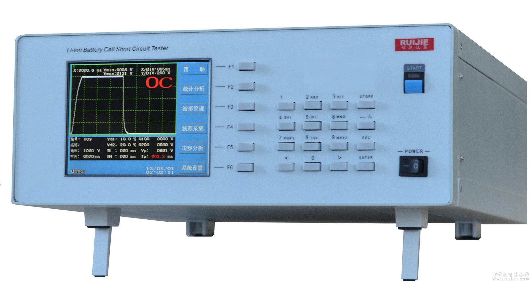 RJ69系列 鋰電池芯短路測試儀分基本型和標準型(分析型)共4個型號(B后綴的為基本型),您可以根據(jù)具體需求結(jié)合下面的規(guī)格表進行選型,盡管型號不同,作為同一系列,儀器的操作和功能是共通的: 擊穿分析(僅標準型):根據(jù)設置的起始電壓、終止電壓、步進值等參數(shù),儀器可對被測電池芯進行電壓遞進式的自動或手動測試,直到電池芯正負極擊穿點出現(xiàn)。 自動偵測(僅基本型):在主界面下,按ENTER鍵即開始自動偵測,此時啟動鍵上的紅燈在閃爍,被測品一旦連接到測試下上,則自動進行一次測試。按ESC鍵可推出自動偵測狀態(tài)。 波形管理:儀器自身可存儲100組或1000組測試參數(shù),即可存儲100或1000種型號的電池芯測試設置參數(shù)。您可以通過測試組的編號或存儲時輸入的名稱進行查詢。 統(tǒng)計分析:儀器自帶統(tǒng)計功能,測試的總數(shù)、合格/不合格率,甚至提供不合格分類的統(tǒng)計信息 數(shù)據(jù)拷貝:對于您關(guān)注的某項測試結(jié)果,可以通過U盤將當前的測試界面以圖片或數(shù)據(jù)的形式拷貝下來。 |