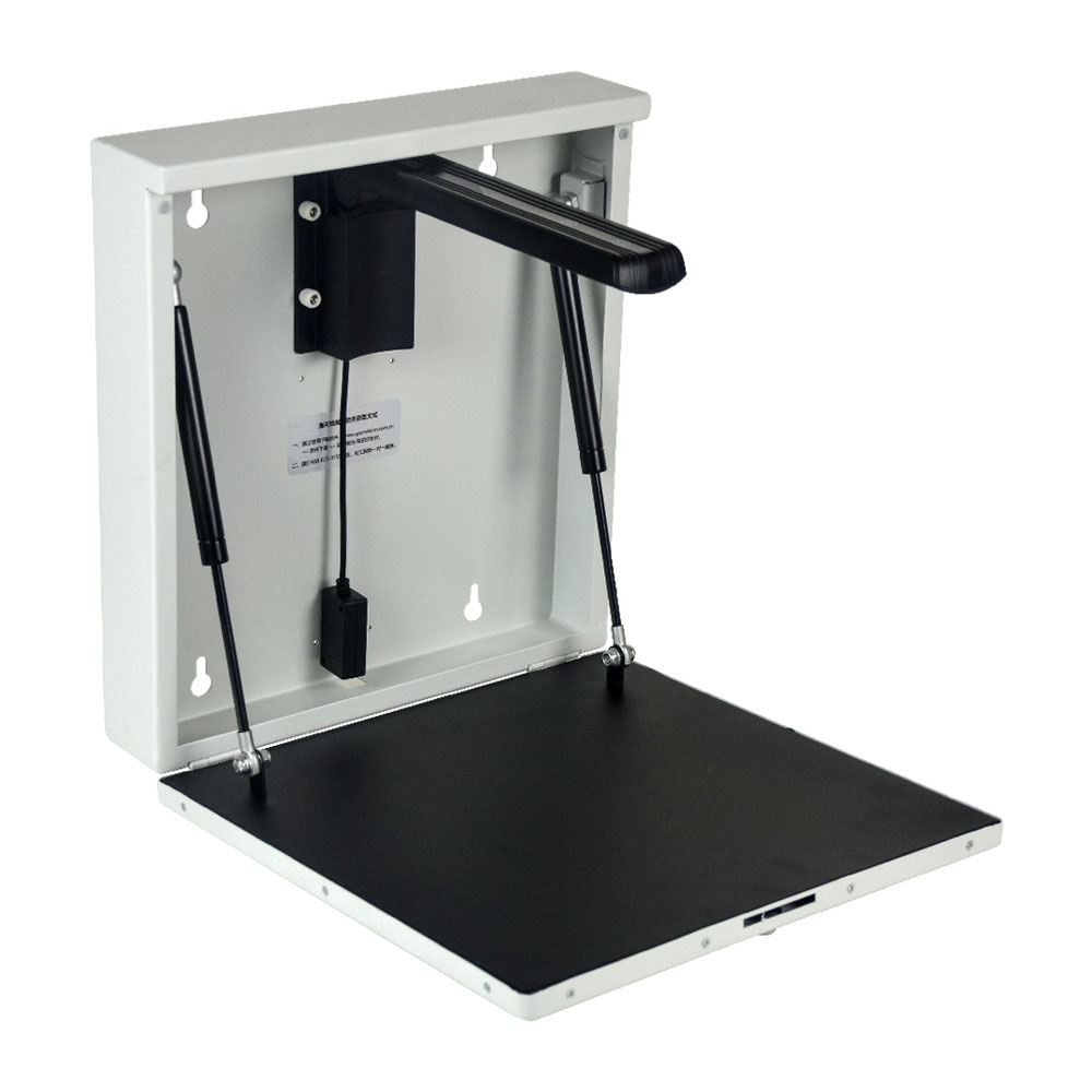 2、  壁掛式機箱一體設計(壁掛式箱體,為講臺省出位置,為教師留出更大教學空間,機箱配置機箱鎖,同時實現防盜,防損壞;頂部內置6顆LED燈進行補光。