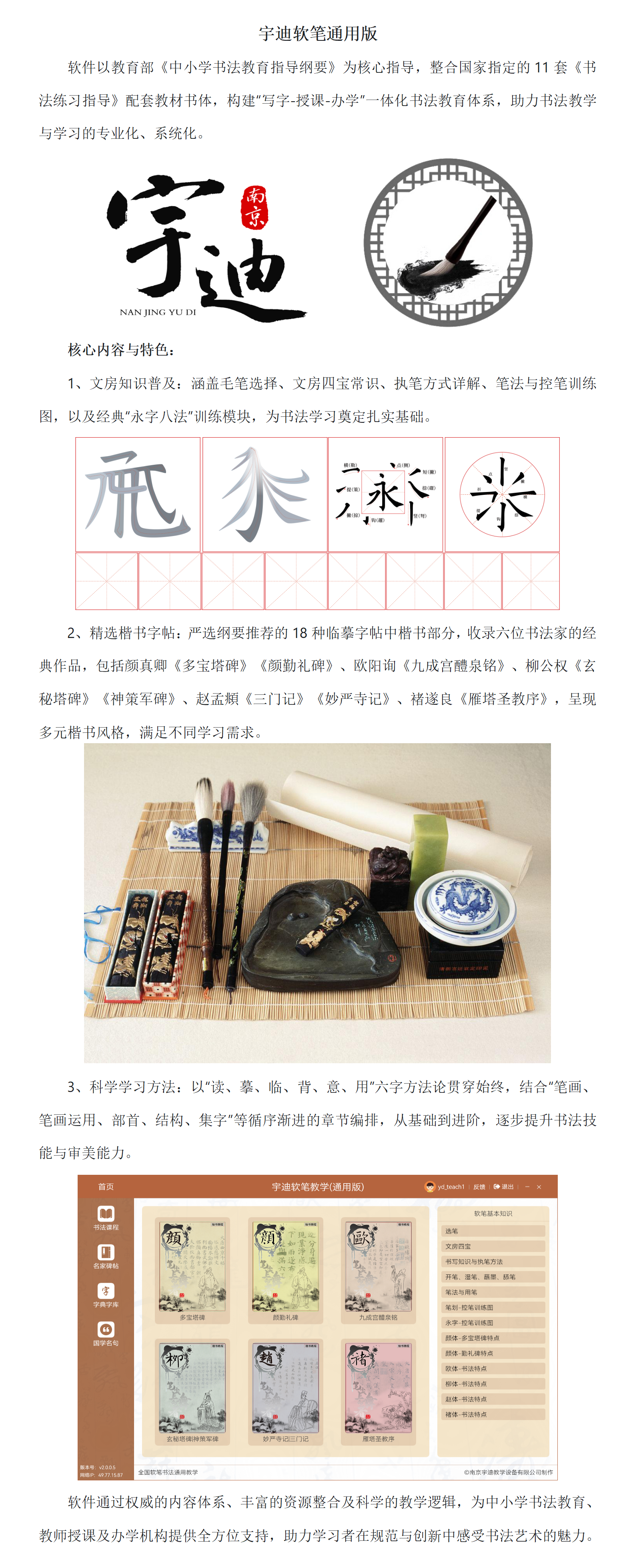 | 南京宇迪教學設備有限公司、開發(fā)研制數(shù)字書法教學系統(tǒng)、數(shù)字書法教室、智云數(shù)字書法教室,智慧教室,智慧教學系統(tǒng)、智慧管理系統(tǒng),全自動錄播系統(tǒng),教學行為分析系統(tǒng),擁有自主開發(fā)的系列產(chǎn)品,涉及中國傳統(tǒng)文化書畫教室、老師成長和提升的教研產(chǎn)品、增賦減負備授課工具、提升優(yōu)質(zhì)資源均衡的結(jié)對課堂、南京宇迪智慧數(shù)字硬筆書法設備、南京宇迪智慧數(shù)字化軟筆筆書法設備、南京宇迪智慧數(shù)字化學生教室配套設備、南京宇數(shù)字化教育設備 |