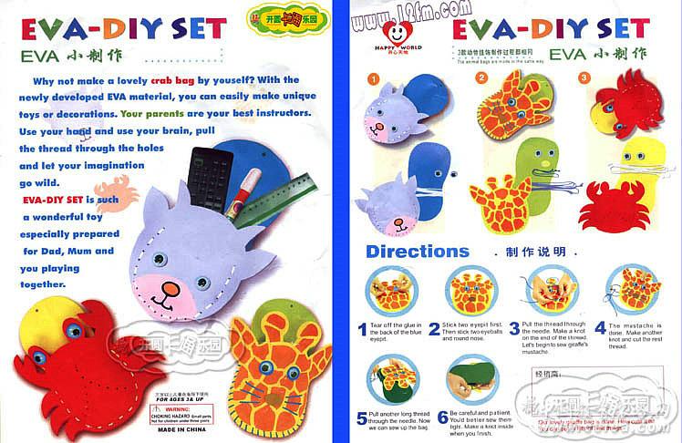 ****【DIY掛袋】(簡裝)能引導(dǎo)小朋友使用EVA配件、彩線、鈍針等工具,制作出個性獨具的風(fēng)車、掛袋等小飾品。
