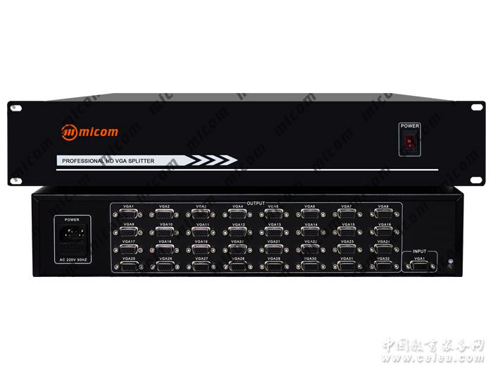 產品詳細介紹VGA分配器1分32的概述: 明控(MICOM)馳名品牌VGA分配器1分32,vga視頻分配器是一款高性能的電腦信號的分配設備,用于一個電腦信號驅動多個顯示屏。vga視頻分配器使信號傳輸衰減小,使圖像信號能高保真輸出。 vga視頻分配器主要應用于廣播電視工程、多媒體會議廳、大屏幕顯示工程、電視教學、指揮控制中心、安防監控行業等要求極高清晰度的場合。本產品適用于各種顯示器和投影信號的分配。 VGA分配器1分32的特性: 1. 型號:MICOM-VGA0132。 2. 支持1路VGA電腦信號輸入,32路VGA電腦信號輸出。 3. 采用500M高帶寬芯片,具有長線驅動功能。 4. 采用信號長距離傳輸失真增益補償技術。 5. 本產品是具有高可靠性的智能設備,設計中采用容錯技術。 6. 機箱材質:金屬面板材質。 7. 支持ESDC(人體靜電大于2000V)保護功能。 8. 支持2560x1600@75分辯率。 9. 支持HV同步信號邊沿修正(CH/V sync skew free)。 VGA分配器1分32的參數: 1. 切換速度:70ms(最長時間)。 2. 輸入電平:模擬信號: 0.5V~2.0Vp-p 。 3. 信號類型:RGBHV,RGBS,RGsB,RsGsBs,高清晰度電視(HDTV),YCbCr/YPbPr成分視頻 (component video),S-video,復合視頻(CVBS)。 4. 信噪比:≥99dB。 5. 輸入輸出接口:HD15PIN(VGA)母頭/15針DB插座/D-Sub。 6. 輸入、輸出助抗:75Ω。 VGA分配器1分32的規格: 1. 電 源AC:110V - 250V , 50 / 60 Hz ,國際電源標準。 2. 設備尺寸:482mm(長)x 210mm(寬) x 89mm(高)。 3. 機架安裝尺寸:19英寸標準 2U高度。 4. 設備凈重:4.8kg。 5. 設備包裝標準配置:分配器主機,說明書,電源線,保修卡。 廣州專業高清VGA分配器廠家,官方網站 www.mcvga.com |