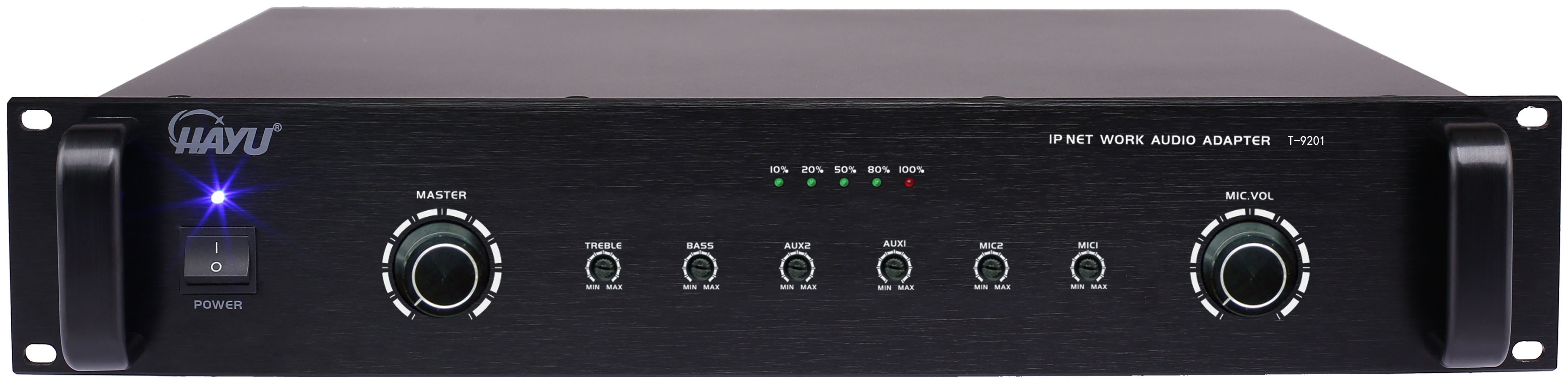 產品詳細介紹標準機柜式設計,黑色氧化鋁拉絲面板,人性化的抽手,考究的工藝,盡顯高檔氣質;能通過網絡接收IP網絡廣播服務器遠程傳輸的音頻文件和控制信號; 音頻采用硬解碼形式,內置硬件編解碼芯片,實現本地實時信號采集功能以及音頻解碼功能; 具有接收廣播呼叫、廣播功能:通過電腦可對單個或多個IP終端、分區、全區呼叫; 具有1路線路輸出接口,支持DHCP自動獲取IP地址; 終端具有遠程優先功能,能實現自動強插功能,實現分級優先、緊急播音等; 終端內置智能電源管理功能,能外接周邊設備,如功放等設備,根椐聲音自動開啟或關閉外接功率放大器的電源; 設有10路輸入通道:包括5路話筒(MIC)輸入,3路標準線路你好(AUX)輸入,2路EMC緊急線路輸入; 緊急輸入(ENC1、2)具有最高優強行切入優先功能; 其次話筒1(MIC1)是為第二級優先,話筒(MIC2、3、4、5)與線路(AUX1、2、3)輸入為第三級; 話筒(MIC)輸入通道和線路(AUX)輸入通道均可獨立調校音量,緊急音頻信號輸入無音量調節,自動默音至-30dB,設有高音(TREBLE)和低音(BASS)獨立調節; 具有功放后控接口:具有功放軟開啟關閉控制接口,能外接多臺帶后控的大功率功放,無需配置電源時序設備,可直接控制多臺大功率功放電源開關; 具有三級信號優先功能,高級別可打斷低級別的廣播; 標配1路10/100M RJ45網絡接口; 1路RJ45網絡接口,2路音頻輸入接口,1路功放后控接口,1路220V外控電源接口,1路220V電源。 |