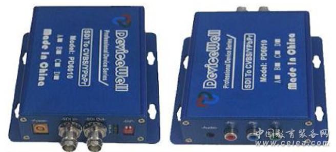 產品詳細介紹產品簡介 中帝威(DeviceWell)高清視頻轉換器,一款專用于3G/HD/SD SDI 信號轉換為PbPr/CVBS 信號的設備。設 備集成3G/HD/SD-SDI 接收器及PbPr/CVBS 編碼器,可方便的將3G/HD/SD-SDI 信號轉為PbPr 或CVBS 信號. 同時PD6010 還可以將3G/HD/SD-SDI 信號中的音頻解嵌,輸出到模擬端口中.此外,PD6010 還支持下變換功能, 輸入為高清時,CVBS 可設定為"下變換"輸出.