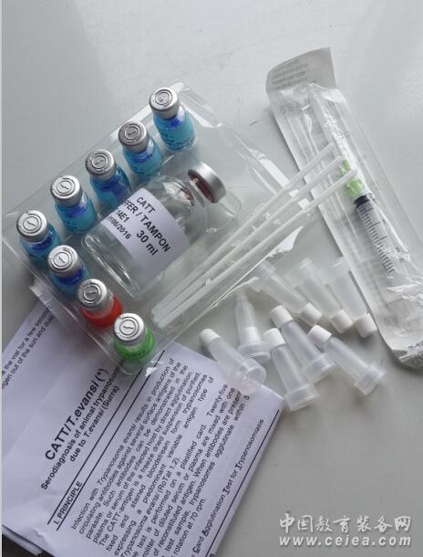 試劑盒含有完成伊氏錐蟲卡片凝集試驗檢測全過程所需全部試劑:抗原、緩沖液、陽性血清和陰性血清; 可對馬屬動物、豬、牛、羊等多種動物的血清進行檢測 Card Agglutination Test for animal Trypanosomiasis caused by T.evansi This field and laboratory test (CATT/T.evansi) is used for the serodiagnosis of animal African trypanosomiasis (T. evansi). It is a direct card agglutination test for detection of trypanosome specific antibodies in blood, serum or plasma of T.evansi in different animal species. It is currently applied for serodiagnosis of T.evansi in various host species (i.e. camels. buffaloes, equidae, dogs,…) Reagent | Freeze dried suspension of purified, fixed and stained trypanosomes of a cloned predominant Variable Antigen Type (VAT RoTat 1.2) of T.evansi. Test sample | Whole blood (for screening), plasma (on heparine or EDTA) or serum. Shelf life - expiry date | When stored under the prescribed storage conditions, all the reagents will retain their activity until the expiry date mentioned on the “Reagent” boxes and on the packing list (1 year). Storage · Freeze dried reagents (antigen, controls) : in the refrigerator(+2°C to +8°C) or in the freezer (-20°C) · CATT buffer: in the refrigerator (+2°C to +8°C) – do not freeze! · During transport, storage and handling: avoid exposure to heat and direct sunlight. · It is recommended to dispatch the reagents from a central storage centre to the field under refrigerated conditions (cold chain). Packaging Test kit containing all reagents and accessory materials + protocol. · CATT/Tev T250: 250 screening tests What else do you need? · Card Test Rotator References · C. Gutierrez, M.C. Juste, J.A. Corbera, E. Magnus, D. Verloo and J.A. Montoya (2000): Camel trypanosomosis in the Canary Islands: assessment of seroprevalence and infection rates using the card agglutination test (CATT/T.evansi) and parasite detection tests. Vet. Parasitol., 90, 155-159. · D. Verloo, E. Magnus and P. Büscher (2001): General expression of RoTat 1.2 variable antigen type in Trypanosoma evansi isolates from different origin. Vet. Parasitol., 97, 183-189. · W.G. Holland, N.G.Thanh, L.N. My, E. Magnus, D. Verloo, P. Büscher, B. Goddeeris and J. Vercruysse (2002): Evaluation of whole fresh blood and dried blood on filter paper disks in serological tests for Trypanosoma evansi in experimentally infected water buffaloes. Acta Tropica, 81, 159-165.